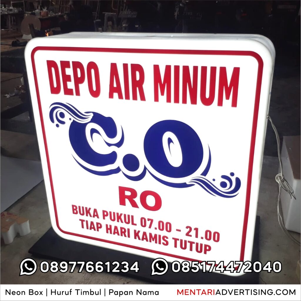 Jasa pembuatan Neon Box murah dan berkualitas di Surabaya hadir sebagai solusi bagi para pemilik usaha yang ingin mendapatkan Neon Box dengan desain custom, bahan berkualitas, dan harga yang terjangkau. Dengan beragam pilihan material serta teknologi pencahayaan hemat energi, Neon Box kini semakin diminati oleh berbagai sektor bisnis, mulai dari toko, restoran, hingga perusahaan besar.