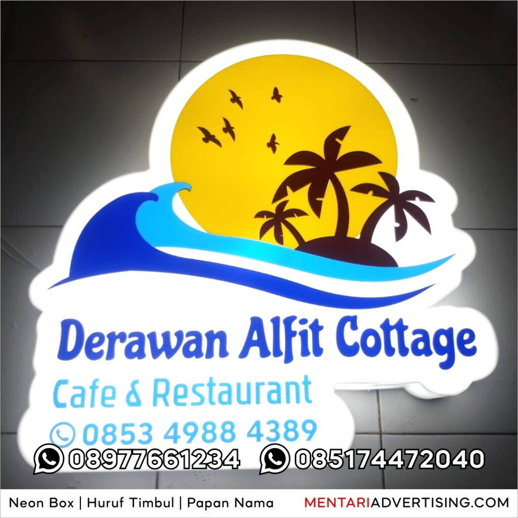 Jika Anda mencari neon box dengan ketahanan terbaik dan desain yang menarik, Mentari Advertising siap membantu! Kami menawarkan neon box dengan bahan berkualitas tinggi, sistem pencahayaan hemat energi, dan garansi hingga 2 tahun. Hubungi kami sekarang untuk konsultasi dan penawaran terbaik!