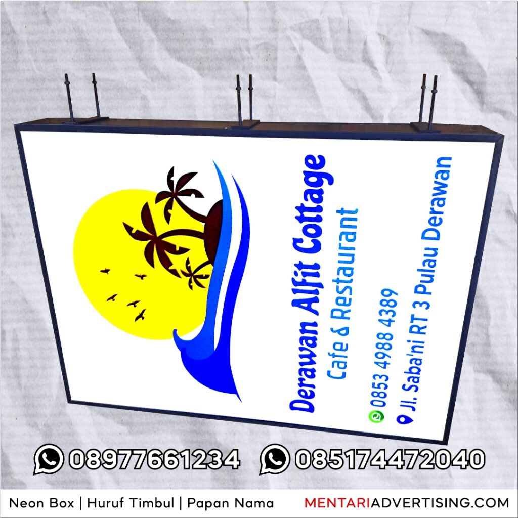 📞 Butuh neon box berkualitas dengan harga terbaik? Hubungi Mentari Advertising sekarang juga! Kami menyediakan neon box akrilik dan backlite dengan kualitas terbaik dan harga bersaing!